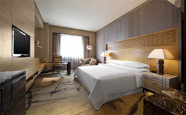 西安喜来登大酒店套房家具是采用新中式的造型设计,房间可以有效的彰显出古色古香的古典韵味。中式酒店套房家具温雅大气、实木材质的打造,搭配天然木质纹理,还原纯实木的艺术魅力,呈现实木的天然质感;可以有效彰显出自然素雅的风格。简约线条主体造型,展现出自然简约的魅力风采,同时榫卯工艺连接,可以有效满足结构的结实稳定。