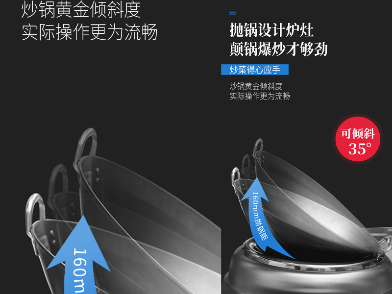 • 抛锅高度可达16CM,更加迎合中式烹饪习惯