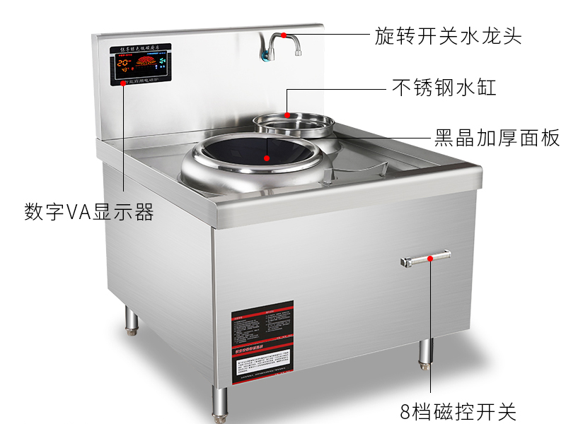 韩国料理厨房设备单头单尾不锈钢电磁炒炉